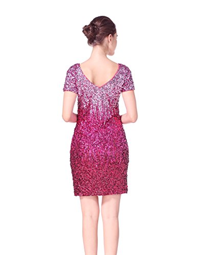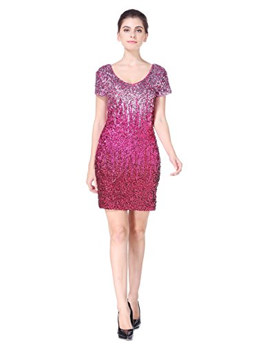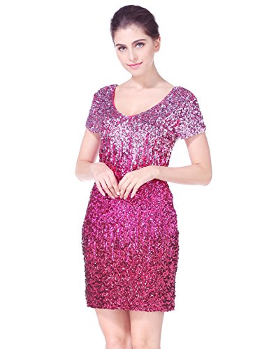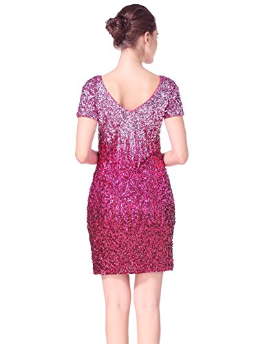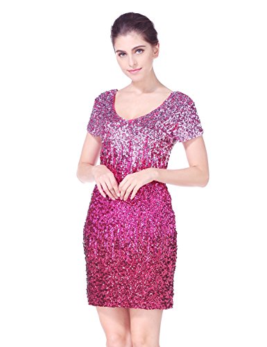 Women's Sequin Glitter Short Sleeve Gowns Sexy V Neck Mini Party Bodycon Dress Not Itching(S,Pink)