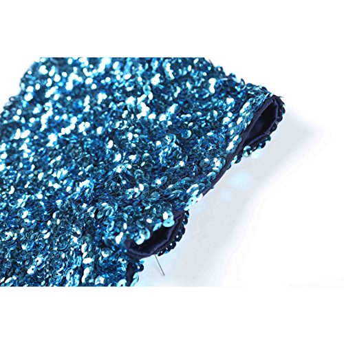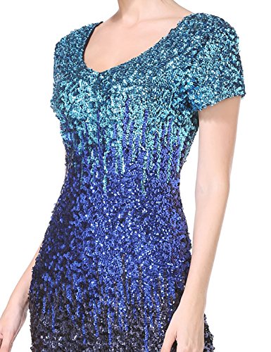 Women's Sequin Glitter Short Sleeve Gowns Sexy V Neck Mini Party Bodycon Dress Not Itching(XL,Blue)