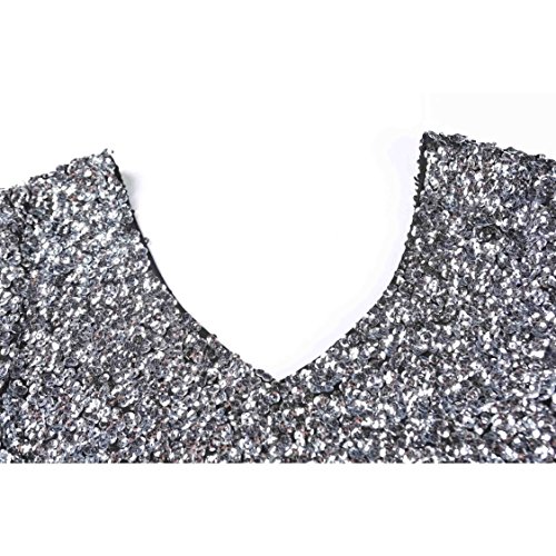 Women's Sequin Glitter Short Sleeve Gowns Sexy V Neck Mini Party Bodycon Dress Not Itching(L,Gold)