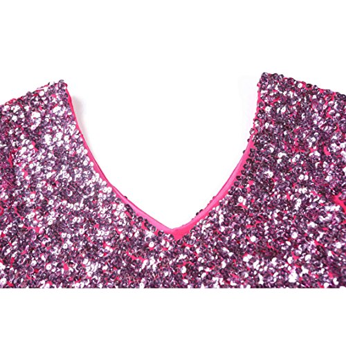 Women's Sequin Glitter Short Sleeve Gowns Sexy V Neck Mini Party Bodycon Dress Not Itching(M,Pink)