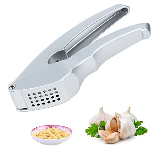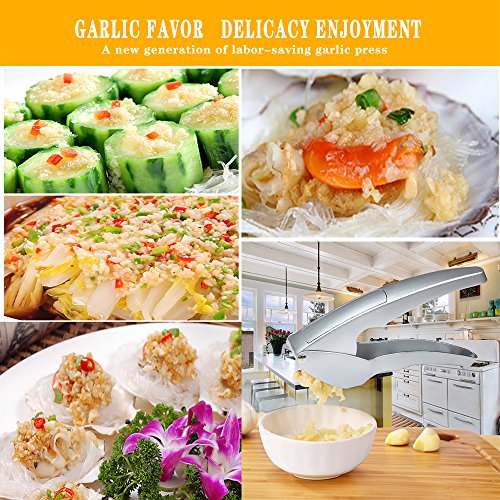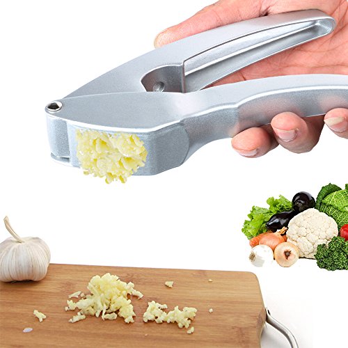 Kyson Garlic Press Aluminum alloy Ginger Garlic Mincer Silver Ergonomic Design & Heavy Duty Construction Kitchen Tool