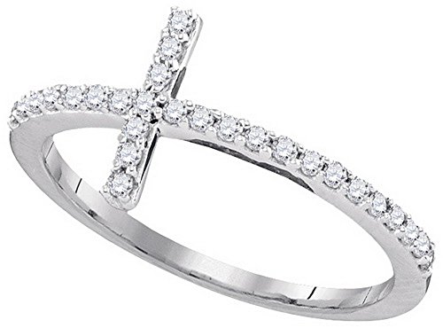 -. Title : 10kt White Gold Womens Round Diamond Christian Cross Religious Band Ring 1/5 Cttw (I2-I3 clarity; J-K color)