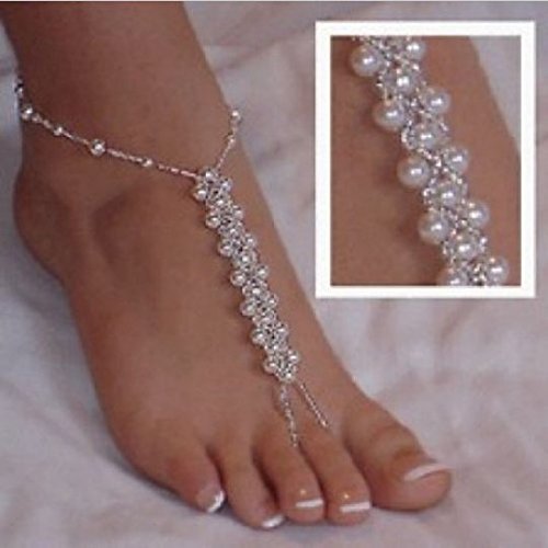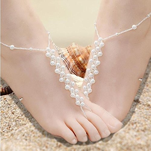-. Title : Rizilia Jewelry White Barefoot Toe Ring Beads Sandals Beach Ankle Anklet Bracelet 1pcs
