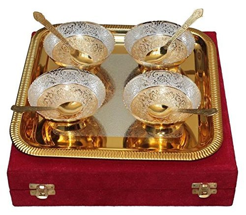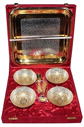 TUZECH Silver Plated Gold Colour Unique Traditional Set of 4 Bowls