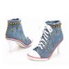 • New 2016 women sneakers shoes woman high heels pumps zapatos mujer tacon sapatos de salto alto denim rivet lace up ladies tenis feminino