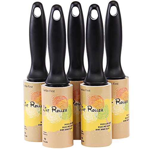 TIANBO FIRST Professional Lint Roller with Giant Adhesive, Extra Sticky Pet Hair Lint Remover, 90 Sheets, Pack of 5