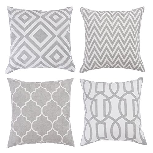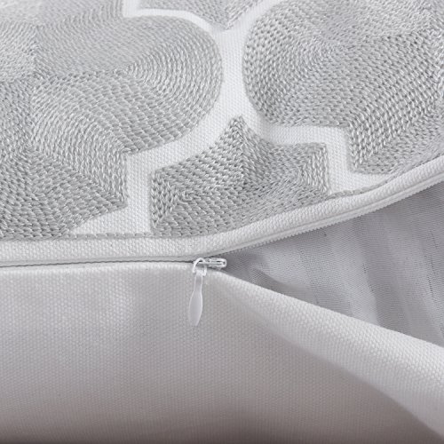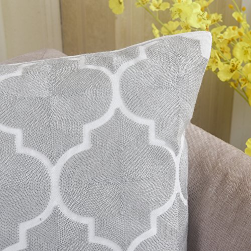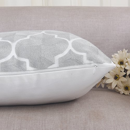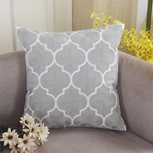 Size: 18x18 inch (45x45cm). Color: Light Grey. Pattern: Moroccan Quatrefoil.