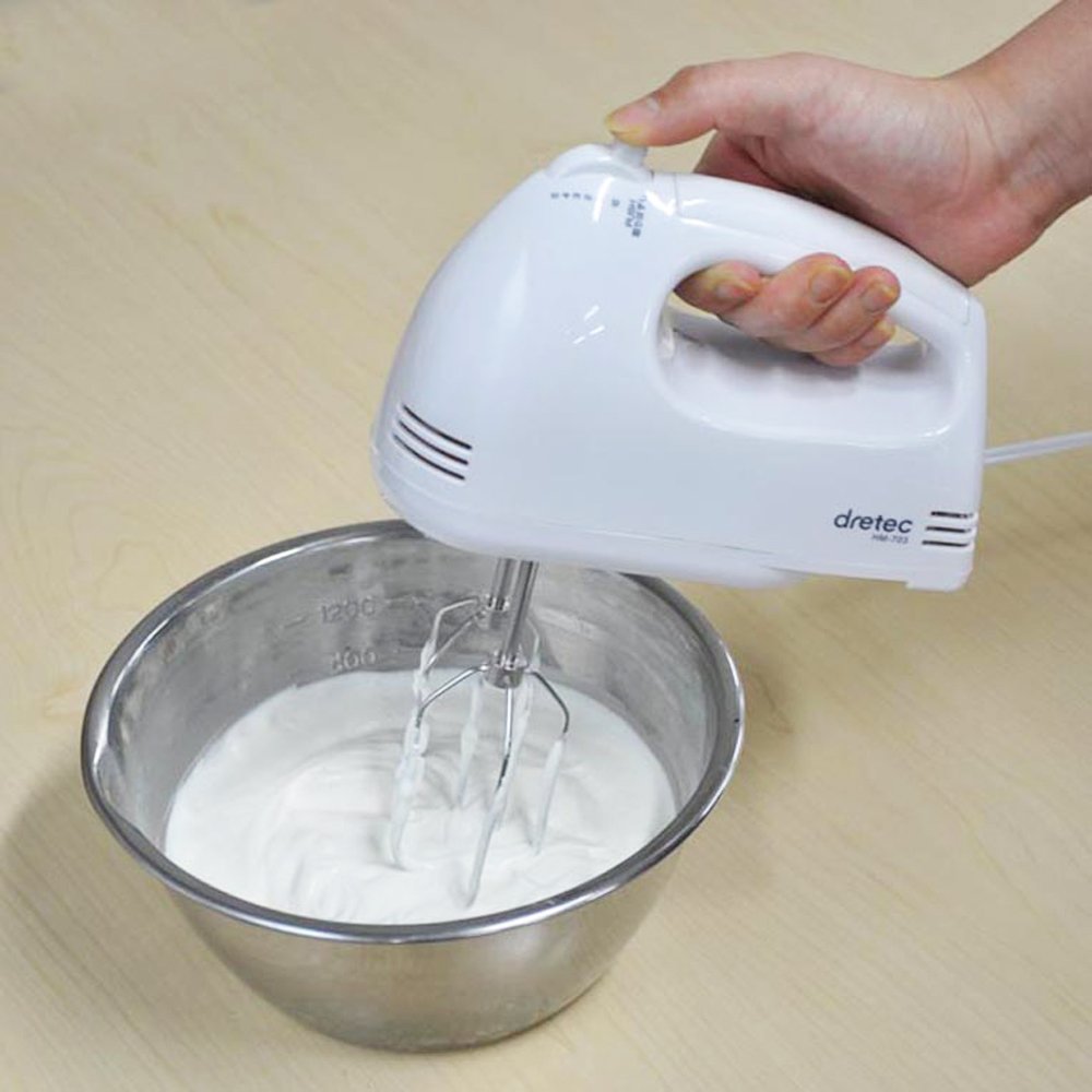 DRETEC [5-step speed beaters switch and power cord storage case with] hand mixer white HM-703WT