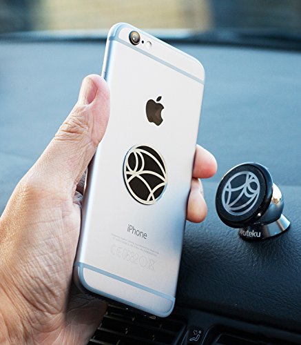 Wuteku Ultraslim Magnetic Phone Car Dashboard Mount Holder with Two Ultraslim Metallic Discs for Apple iPhone 6 5 5C 4S 4, Samsung Galaxy S5 S4 S3