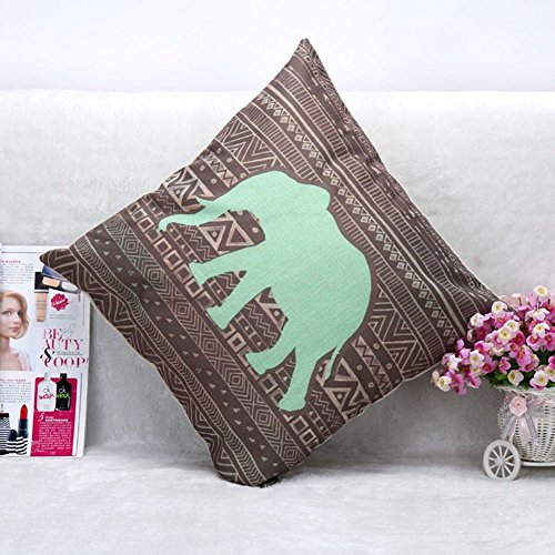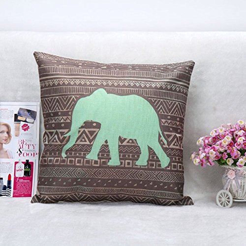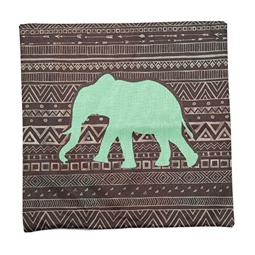 LeiOh Decorative Cotton Linen Square Unique Cut Green Elephant Pattern Throw Pillow Case Cushion Cover 18 x 18 Inches