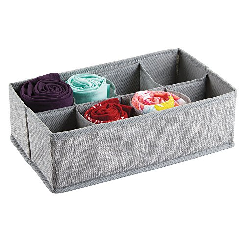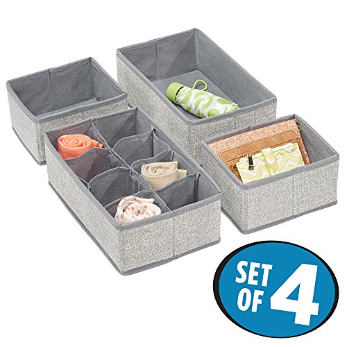 mDesign Fabric Dresser Drawer Storage Organizer for Underwear, Socks, Bras, Tights, Leggings - Set of 4, 11 Compartments, Gray