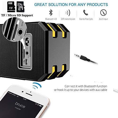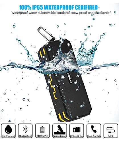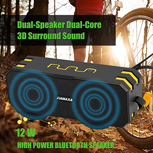 Hamaxa 12W IP65 Waterproof Bluetooth 4.0 Speaker Portable Outdoor Wireless Stereo Speakers with Microphone Dual Bass Drivers 3.5mm AUX IN SD TF Cards Slot Hands Free for iPhone Samsung Beach Golf Home