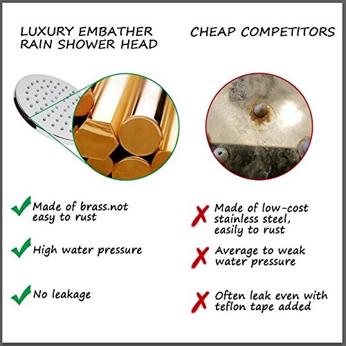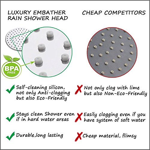 SELF-CLEANING NOZZLES AND PREMIUM MATERIAL : 90 Powered Anti-Clogging Silicone Jets - Prevent lime and hard water deposits;Built with Premium Quality Brass ---Not easy to rust,But ensures long-lasting durability and to enjoy luxury rainfall shower