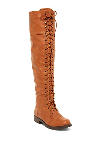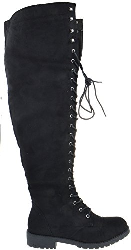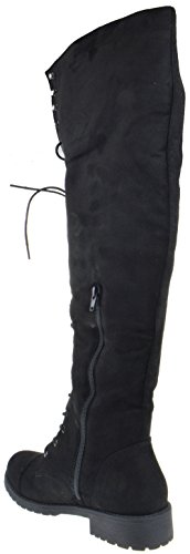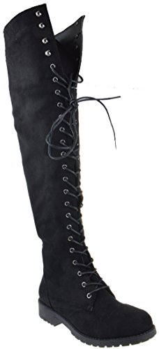 Nature Breeze FG08 Women Leatherette Over The Knee Lace Up Combat Boot - Black