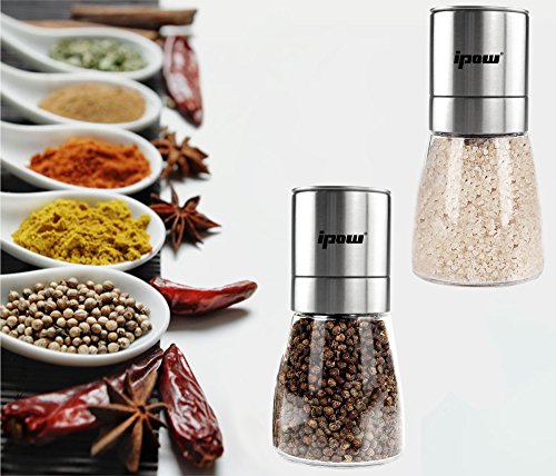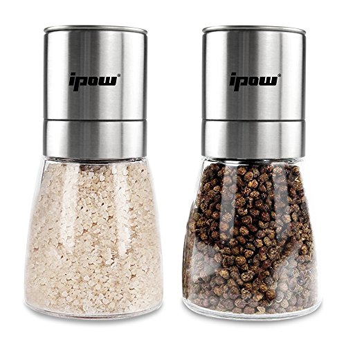 Ipow Salt and Pepper Mills Set - Dual Set of Combo Spice Grinders For Salt & Pepper with Ceramic Adjustable Coarseness - Stainless Steel Salt & Pepper Grinder Manual, Salt & Pepper Shakers Pair