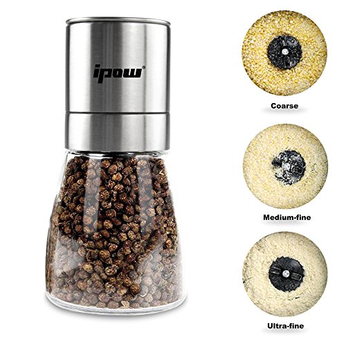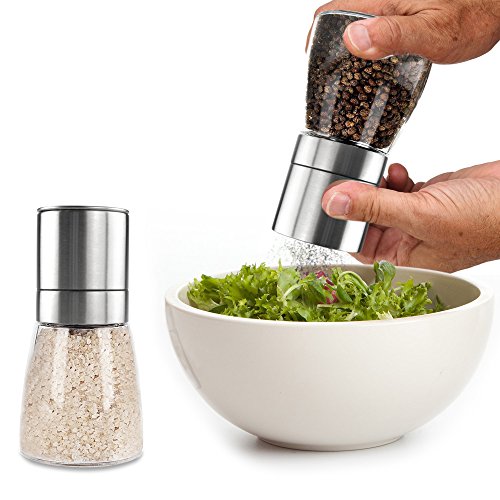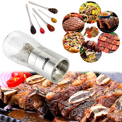[Coarseness Can Be Adjusted ] Adjustable plastic knob on the top of stainless steel shaker that allows you to control the coarseness of the spice, it has grinding indicator on the knob that guide you to choose between coarse or fine grind, makes your food more delicious. Suitable for milling all dry based spices: Salt, pepper, peppercorns, sesame,himalayan salt etc