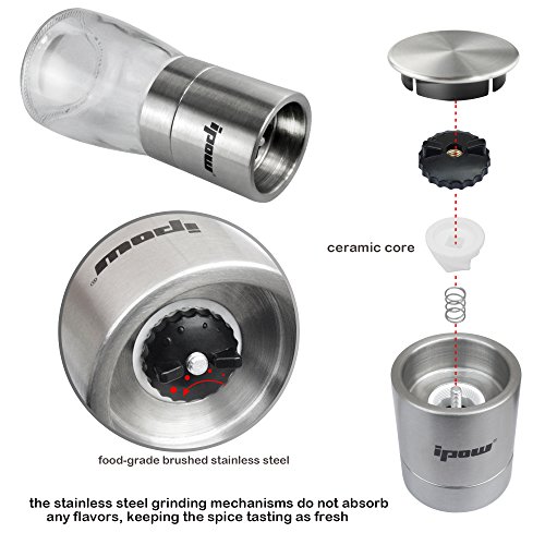 [Superior Stainless Grinder] The Salt and Pepper Mill Set Made of Food-grade stainless grinder and premium ceramic grinding mechanism, that makes it enough solid and hard-wearing. Ergonomics size and elegant modern design perfect for any themed kitchen and table use to make freshly pepper powder spice for tasty salad or steak