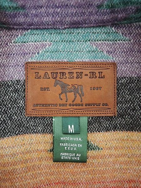Mens ブランドLAUREN-RL ローレン ラルフローレン カラーカラフル メール便不可 コンディション★★★ 素材ウール・ナイロン 表記サイズM ※ 実寸M位 スタッフコメント人気のラルフ ネイティヴアイテム ※ 左最終ボタンに若干の変形 実寸サイズ 着丈 63 cm 身幅 53 cm 肩幅 41 cm 袖丈 58 cm ※ウエスト・ヒップ以外は平置き採寸【code】#c