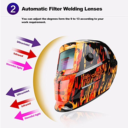 - LONG-LIFE BATTERY W/ SOLAR: The Auto Darkening Filter (ADF DX-500S) enables welders to adapt to various working environments by controlling the shade of the lens; Sensitivity adjustments from ambient lighting sources; Battery powered with solar panel technology for longer life (up to 5000 hrs).
