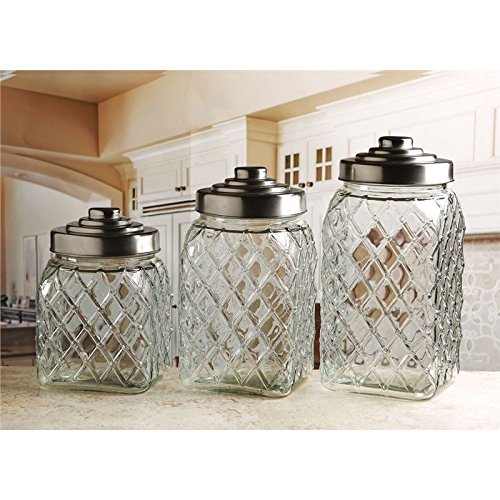 Palais Glassware Preserving Glass Canister Food Jar with Ceramic Lid Handle (Set Of 3, Diamond Pattern Glass with Silver Lid)