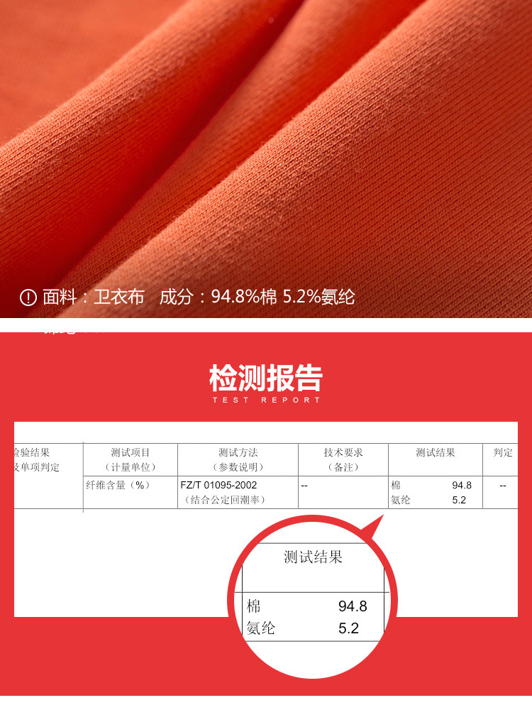 | 主 料:94.8%棉 5.2%氨纶颜 色:橙色,浅绿,藏青,白色,绛紫色 |