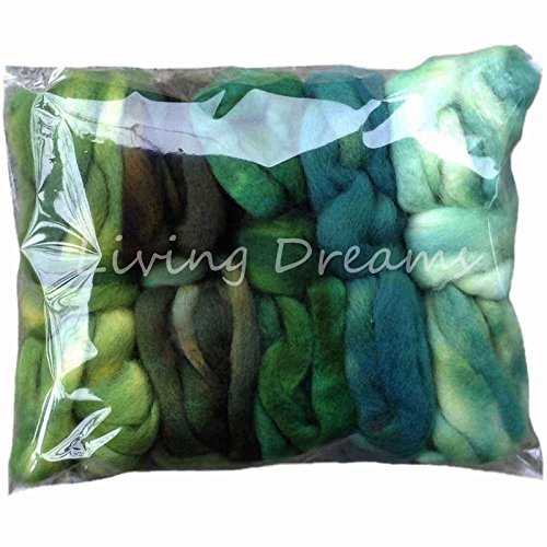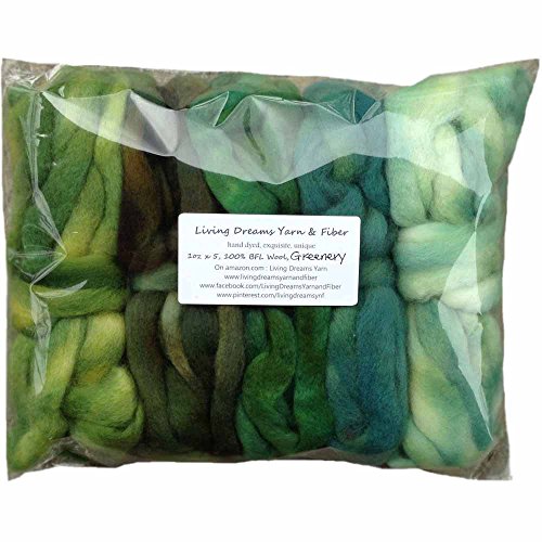 SPINNING FIBER Super soft BFL Wool Top Roving drafted for hand spinning with drop spindle or wheel, felting, blending and weaving. Variegated hand dyed mini skeins. 5 Ounce DISCOUNT PACK, Greenery