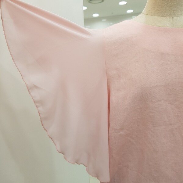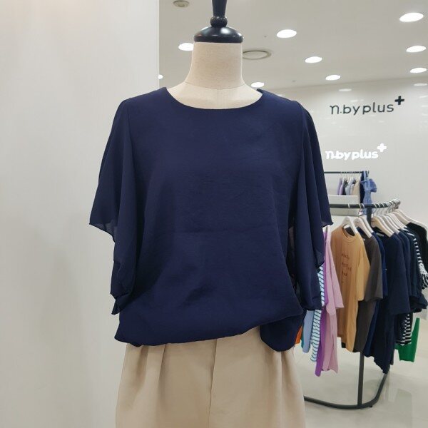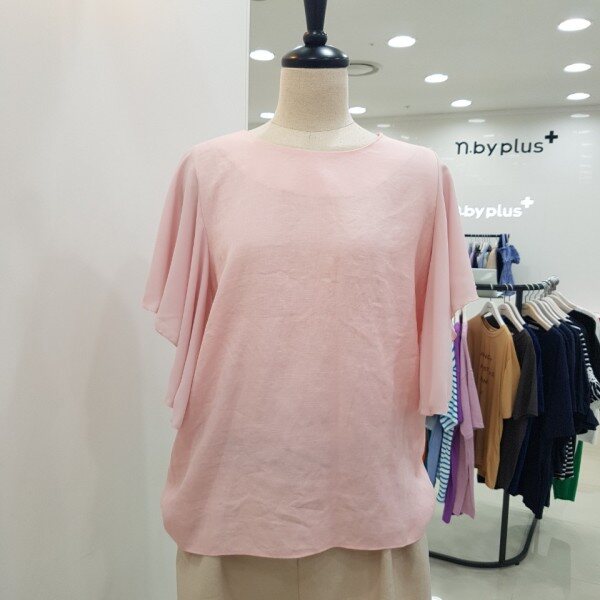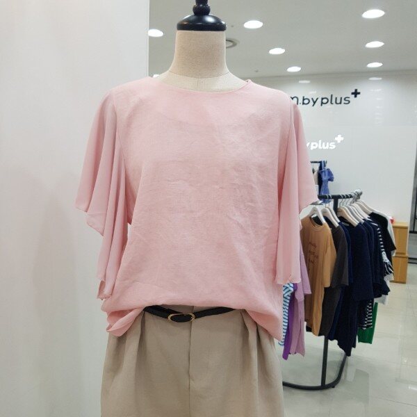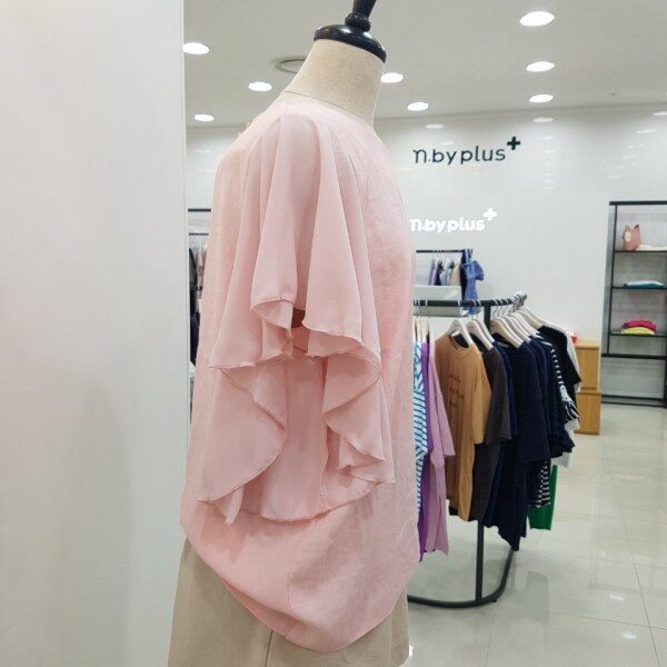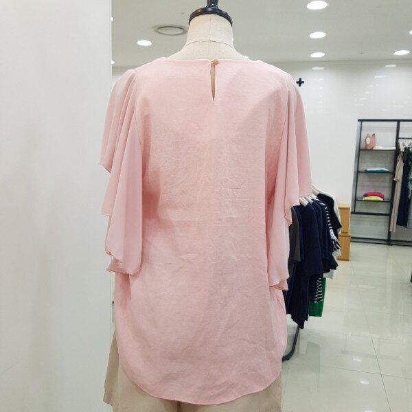 프릴 소매가 마치 날개가 달린 듯한 느낌을 주는 블라우스입니다.힙을 가려주는 기장이어서 부담없이 입기 좋아요.