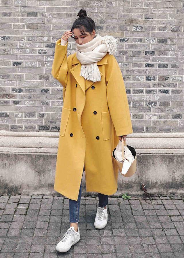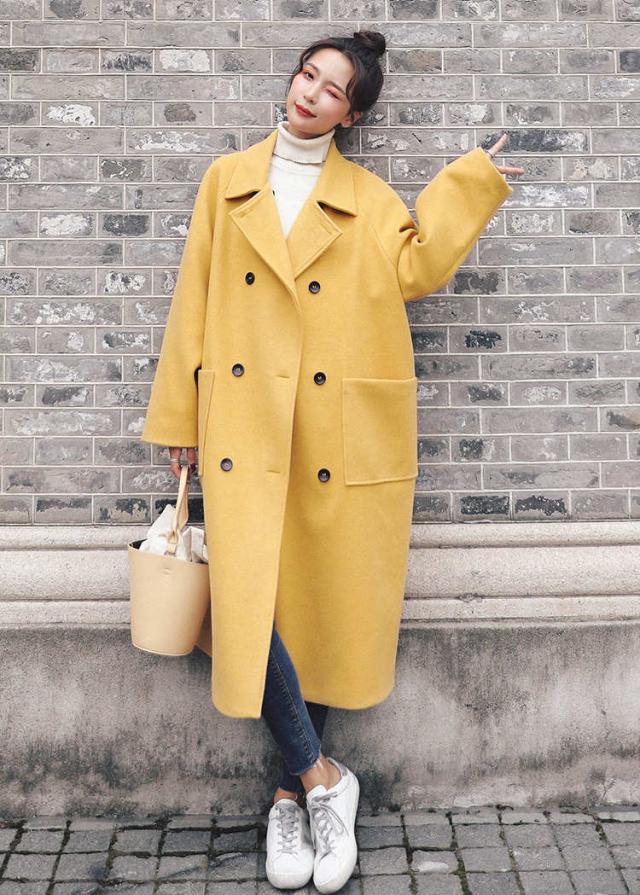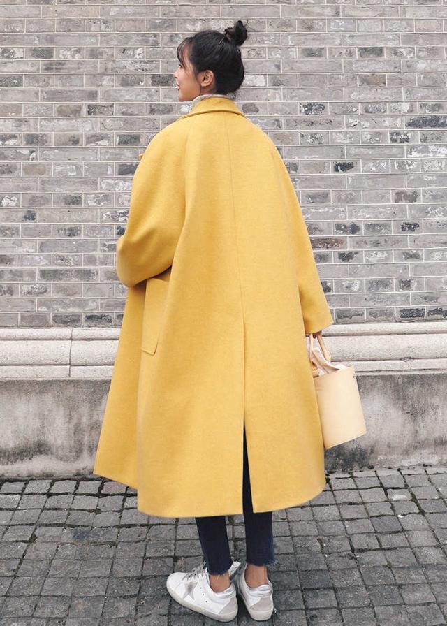 黄 秋冬ロングガウンコート