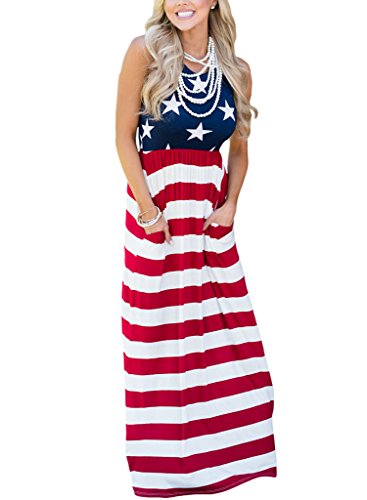 This beautiful american flag dress features a sleeveless, Striped, floor length for a stylish look!