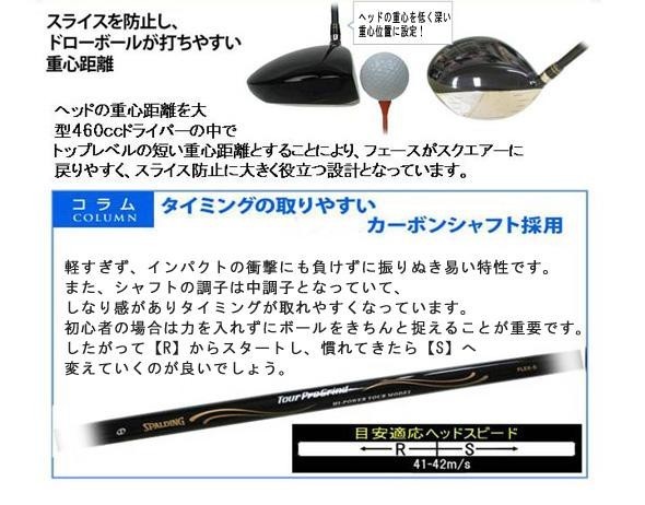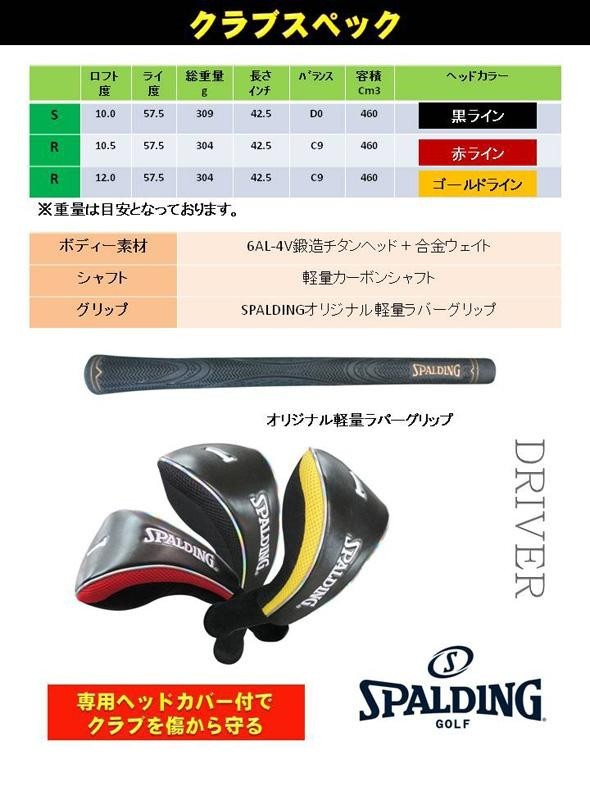 | 素材・材質 | ヘッド:6AL-4V鍛造チタンヘッド+合金ウェイト シャフト:軽量カーボンシャフト グリップ:SPALDINGオリジナル軽量ラバーグリップ |