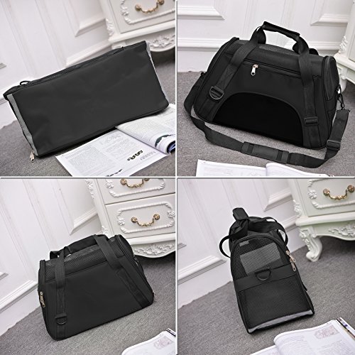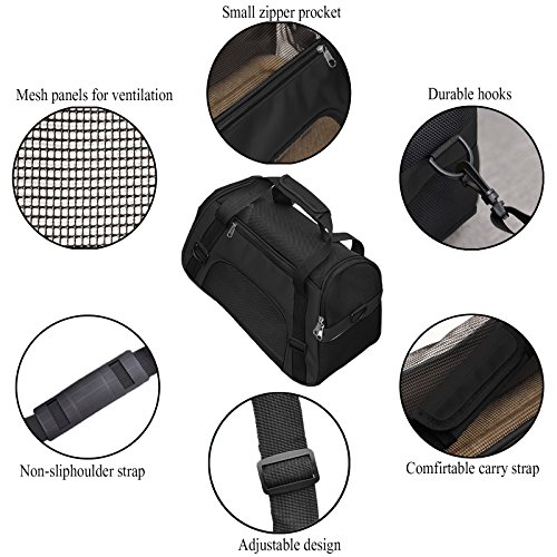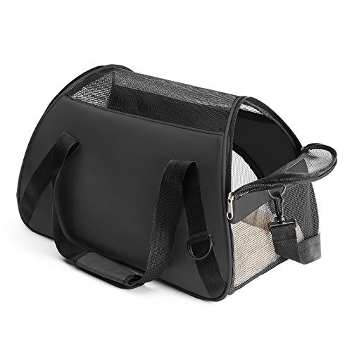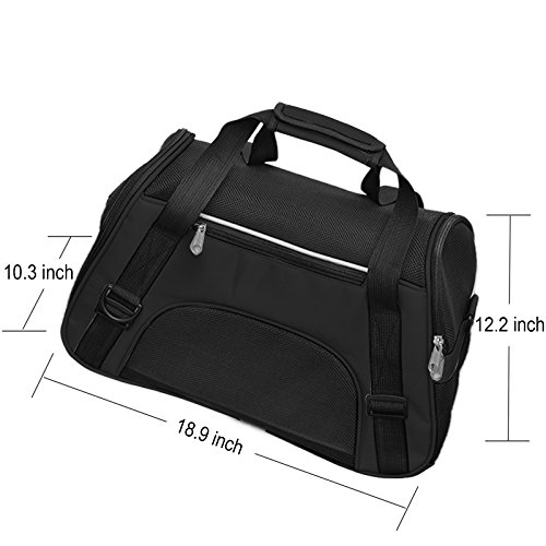 Studio : Getek Publisher : Getek Binding : Misc. Product Description A cat carrier is very helpful in getting your cat from place to place. Probably the most regular use of one will be for visits to the veterinarian. Many cats don't need to ride in a carrier very often, but you will find that you do need one from time to time. Below are some instances for which a cat will need a carrier: When you take your kitty in for her routine check-ups and vaccines. For occasional travel. For an overnight motel visit if your house is being renovated. To travel to the emergency clinic if something happens. Specification: - Size: 18.9"L x 10.24"W x 12.2"H - Material: Oxford cloth mesh Plywood plate, the bottom is hard Plywood - Strap length: about 30"-47" (adjustable) - Recommend Pets Weight: up to 8 lbs What You Get: 1 * Pets Carrier 1 * Bottom Cushions 2 * Plywood (hard, not easy to deformation, 3mm thick) NOTE: 1. Please measure your pet before purchasing - LENGTH: neck to base of tail; HEIGHT: floor to top of shoulder. 2. Please DO NOT choose your pet carrier based on weight--please reference your pet's length and height when selecting a carrier, recommended for cats and small dogs up to 8lbs. 3. Each airline has different rules regarding the type of pet carriers permitted on their aircraft, so be sure to check with yours when you travel by plane. 0