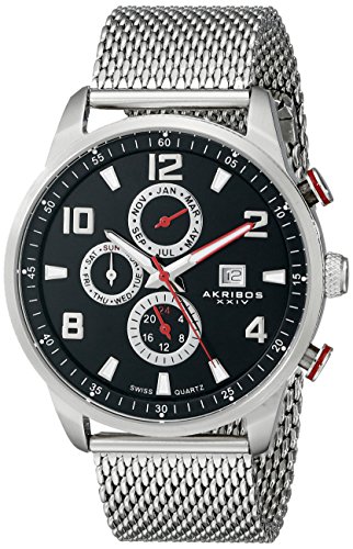 -. Title : Akribos XXIV Men's AK784SSB Analog Display Swiss Quartz Silver Watch