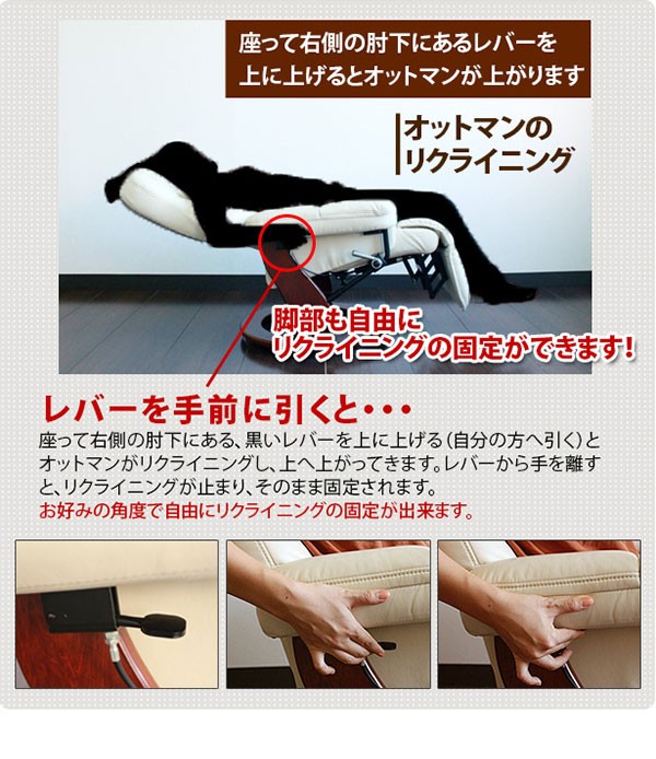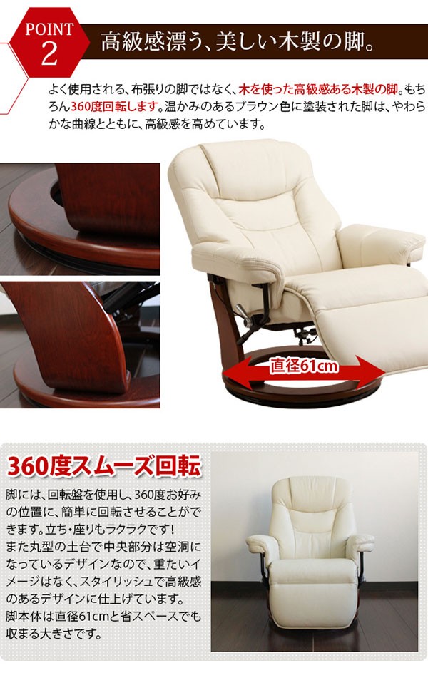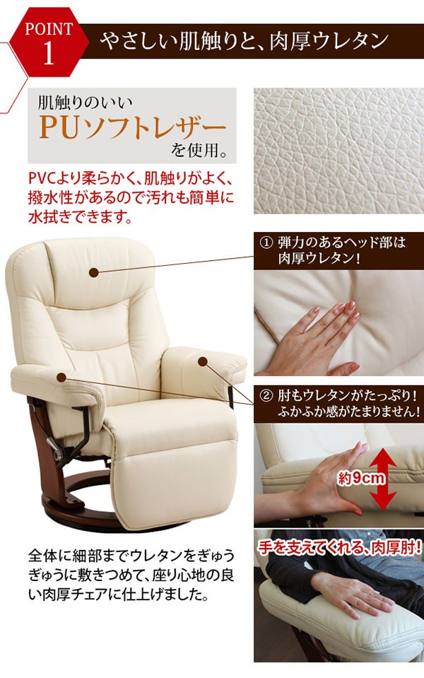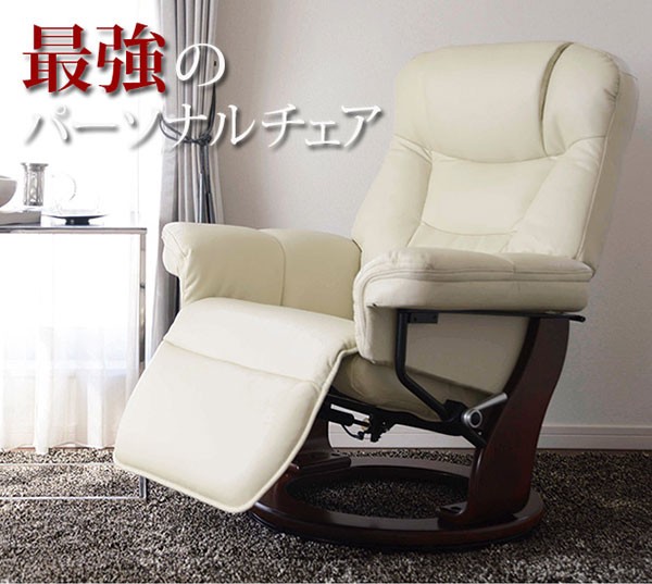【商品名】パーソナルチェア/リクライニングチェア 【オットマン一体型】 張地:合成皮革/合皮 肘付き 『ニース』 アイボリー