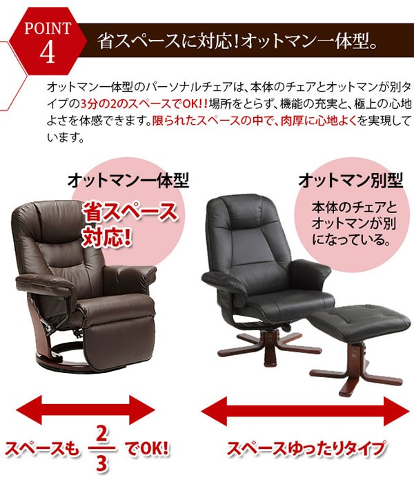 オットマンと一体型のデザインで、スペースを取らず、スッキリ置けます。