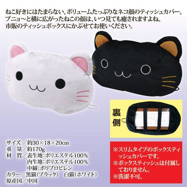 ねこ好きにはたまらない、ボリュームたっぷりなネコ顔のティッシュカバー。ブニョ~と横に広がったねこの顔は、いつ見ても癒されますよね。市販のティッシュボックスにかぶせてお使いください。