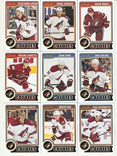 Phoenix Coyotes 2014 2015 O Pee Chee NHL Hockey brand new factory sealed 16 card licensed team set made by Upper Deck including Oliver Ekman-Larsson, Mikkel Boedker, Radim Vrbata, Antoine Vermette, Shane Doan, Mike Ribeiro, Thomas Greiss, Martin Erat, Paul Bissonnette, Lauri Korpikoski, Martin Hanzal, Rob Klinkhammer, Derek Morris, David Moss, Keith Yandle and Mike Smith