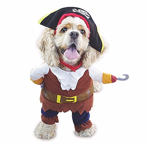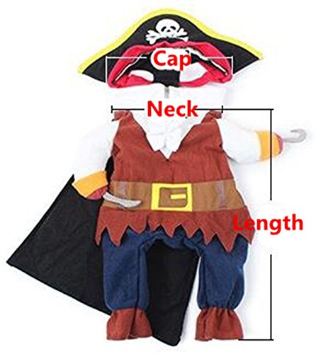 Feature : Made of polyester and non-woven fabric, soft and breathable. This cool pirate costume design turns your pet into a humoristic caribbean pirate. / Its worth it for the laughs! Makes a great gift for the holidays and for entertainment. / This designer pet outfit will bring both style and comfort to the little member in your family.Perfect for Everydays Wear, Weekend Parties, Halloween, Christmas, Birthdays, Weddings, Parades, Photo Shoot or Play date. / Note:Please choose the size carefully in the description / Package include: 1 * Pet Cat Pirate Costume Suit with Hat
