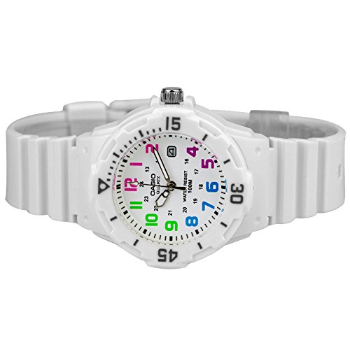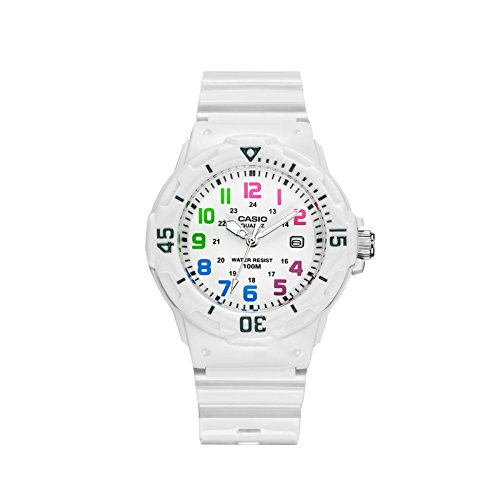 Brand, Seller, or Collection Name:Casio Model number:LRW-200H-7B Part Number:LRW-200H-7B Model Year:2017 Item Shape:Round Dial window material type:Mineral Display Type:Analog Clasp:Buckle Case material:Aluminium Case diameter:34 millimeters Case Thickness:12 millimeters Band Material:Resin Band width:14 millimeters Band Color:White Dial color:White Bezel material:Resin Calendar:Date Special features:Quartz Movement:Quartz Water resistant depth:100 Meters