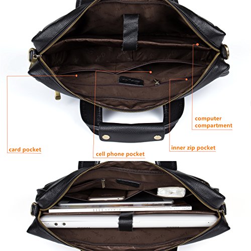 -. Feature : [Material /Fabric]: First layer of cowhide leather(Genuine products. 100% brand new, original and high quality) with polyester lining. / [Hardware & Closure & Color] : High quality golden hardware. Zip closure. Black. 1 color for your needs. Use it as casual bag, travel bag, laptop bag or business bag as well. Perfect for everyday use, work or travel. / [Structure]:1 main pocket, perfect for your 14 inch Laptop, mobile phone, magazine (210mm*285mm), A4 file and other daily things. 1 inner zipper pocket, 1 Iphone 6s pocket, 1 card slots, 1 back pocket, 1 computer compartment, 1 back pocket. It is convenient & comfortable to wear in 3 ways, tote, shoulder, cross body. / [Dimension]:14.96(L)*3.94(W)*11.02(H)(in). One size for your needs. Please allow 0.3"-0.9" in size error due to manual measurement. / [Features]:Classic, practical and light-weighted. The style is fashionable with large capacity and the color is trendy which can be matched with many different clothes. And there is something new, the pattern design makes the bag looks so fashion and not too formal nor too casual either. Wherever the handles or strap, it is durable and comfortable. Hope this bag could be your loyal friend keeping company with you for every adventure both near and far.
