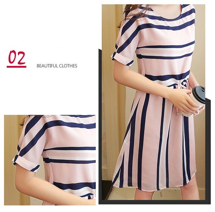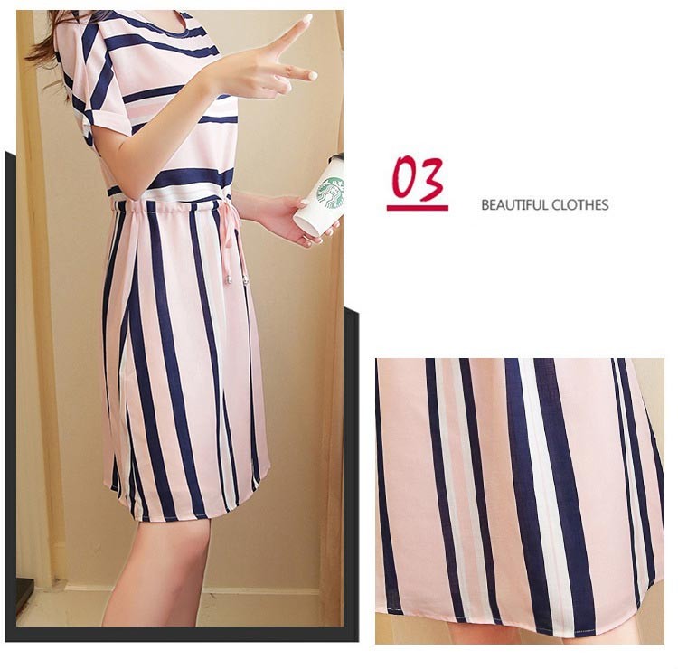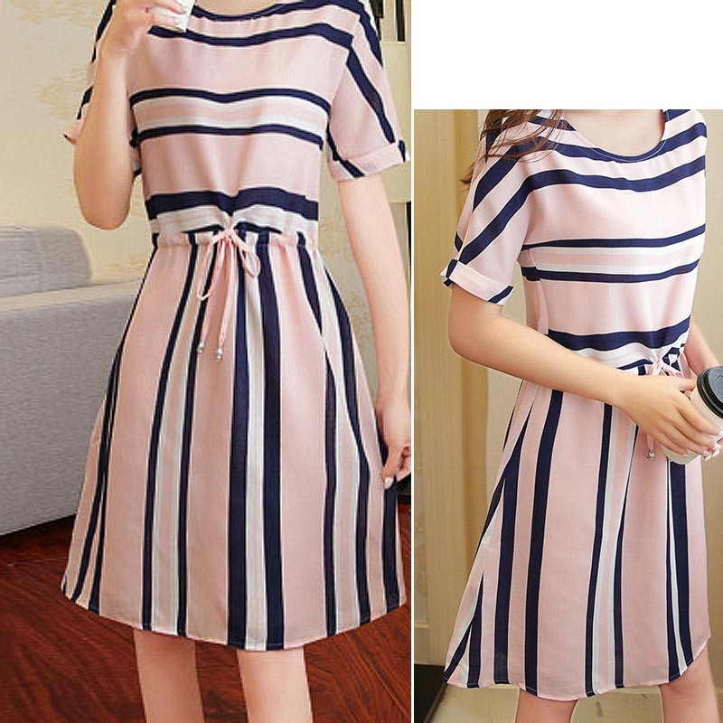 トップスに横ストライプ、ボトムスに縦ストライプデザインのワンピース♪