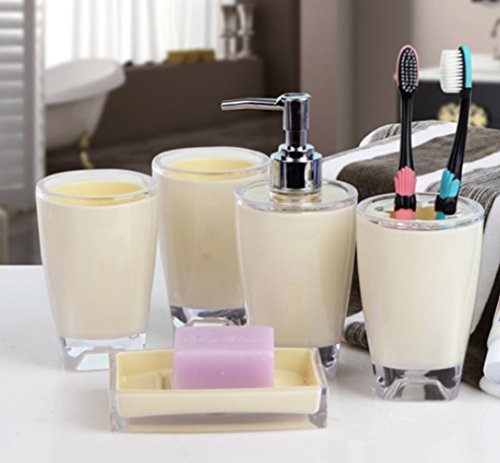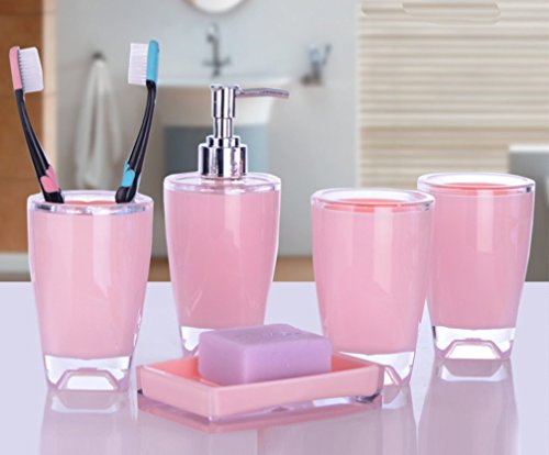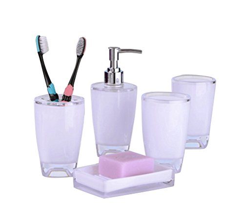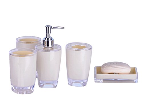 -. Feature : We bring you another stunning range of bathroom accessories to match every type of style and décor. / Bathroom accessories set with delicate painting, comes in attractive gift box / 5 pieces set:2 x Tumbler,1 x Soap dish,1 x Soap Dispenser,1 x Toothbrush holder / All items are made of Eco-Friendly material and are heavy duty and durable / Easy to clean design,Ideal for home decoration or gifts