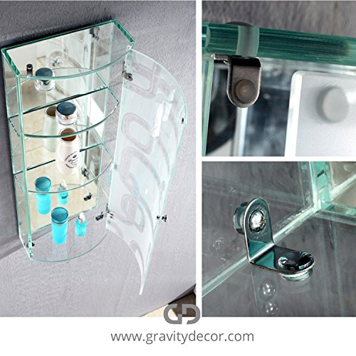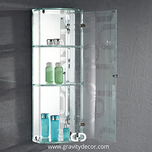 Branded by gravity decor 100% tempered glass cabinet. 1. Type: storage holders & racks, bathroom shelves. 2. Material: tempered crystal glass. 3. Color: crystal white. 4. No. Of tiers: 2. 5. Applicable space: bathroom. 6. Fitting: wall mounted. 7. Apply: living room, bathroom, storage cabinet. 8. Cabinet glass thickness: 3/8" inch. 9. Door glass thickness: 1/4" inch. 10. Size: 10 7/8" x 5 1/2" x 18 7/8" inches. 11. Hardware’s: 304 stainless steel hinge and screw, copper handle. 12. Package: standard export package. Packaging details: 1. Unit type: pack. 2. Packing: 1pcs/ctn. 3. Package weight: 27.55 lbs. A glass cabinet with single door. This stylish glass cabinet will add a charming touch to your modern bathroom. Clothes, towel, soap etc. can be placed on different shelves. A great product to have in your bathroom, dust and dirt can easily be wiped off using a wet cloth.