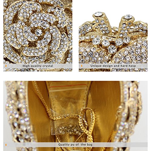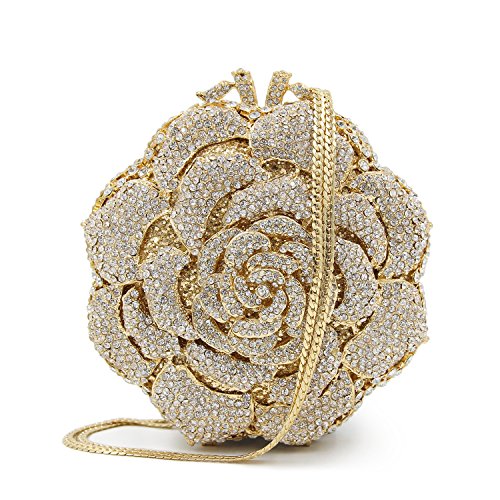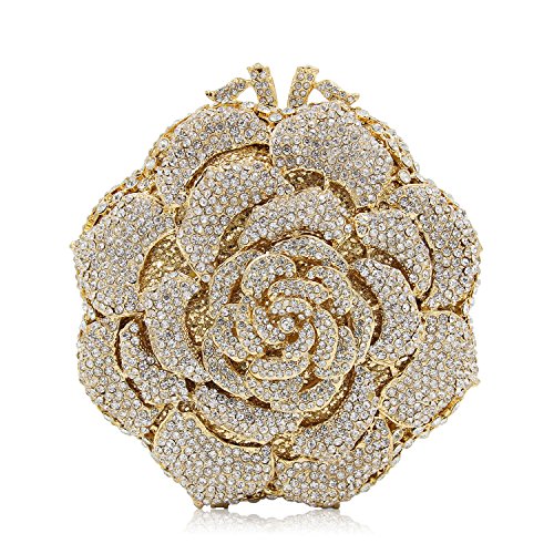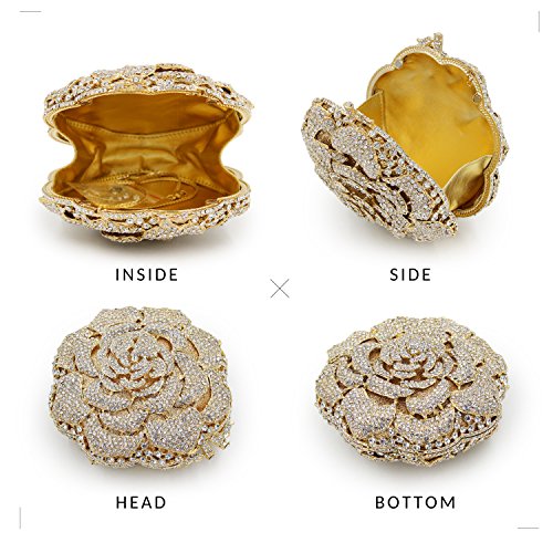 (Milisente)/Accessories/Handbags/DIRECT FROM USA/Milisente Women Evening Bag Rose Flower Crystal Banquet Clutche Purse (Gold)