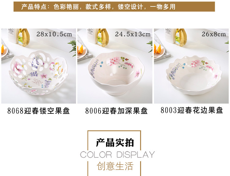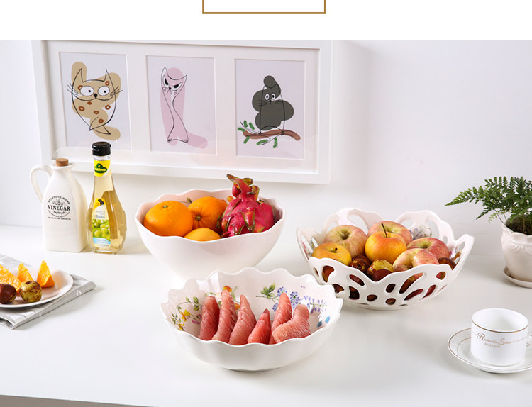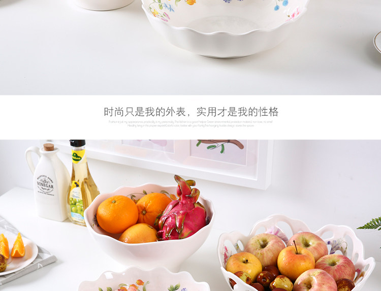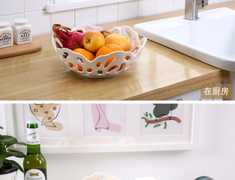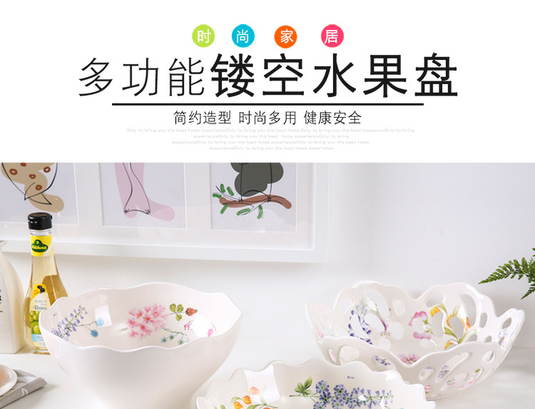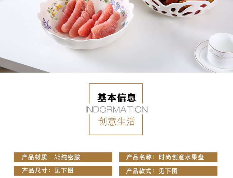 密胺创意欧式客厅家用圆形水果盘 北欧简约镂空大号高档果盆