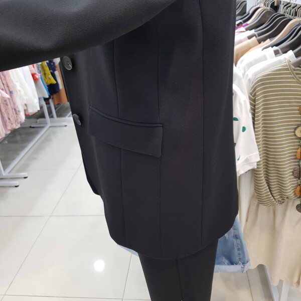 바지와 투피스로 나온 이이템으로 기본블랙컬러감이 단품코디로도 가능하여 따로따로 연출이가능하며 똑떨어지는 라인감으로 깨끗하게 입으실수 있는 아이템 입니다 톡톡한 두께감이 초겨울까지도 입으실수 있는 소재감