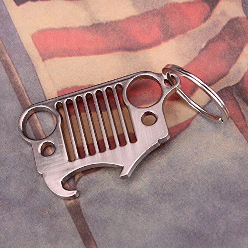 -. Title : Grill Keychain with Bottle Opener 3D Cool Key Chains Ring Heavy Duty Laser-Cut 304 Stainless Steel Beer Car Accessories for Jeep Wrangler Men Women Driver Automotive Enthusiasts (Silver)