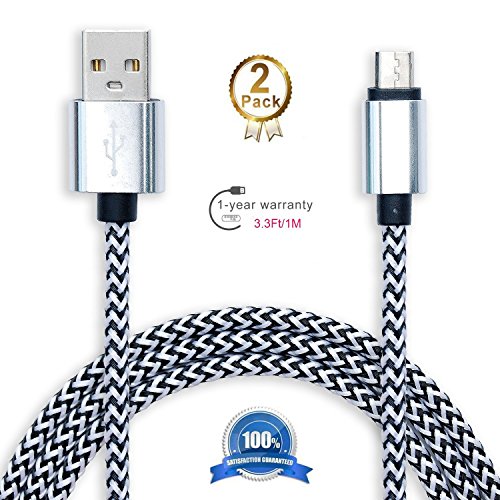 2 Pack: 3ft (1m) Micro- USB to 2.0 Male USB High Speed Cable Data Sync for Android - Premium Phone Charging Cable for Samsung, HTC, Sony, Motorola, LG, Blackberry, Nokia White