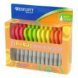 These 5" pointed scissors are specially designed for a child's hand. The molded, symmetrical handles allow for either left or right handed use. An inside grind on the stainless steel blades mean they are accurate and dependable. These scissors cut easily through paper, fabric, string, and other craft material.Feature