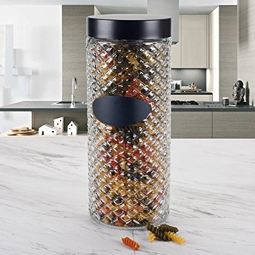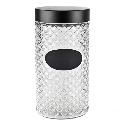 Housewares International 33705 Blue Harbor Waffle Glass Jar with Chalkboard Label, 71 oz, Clear