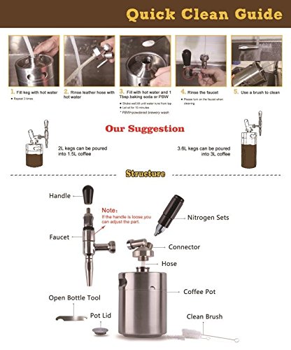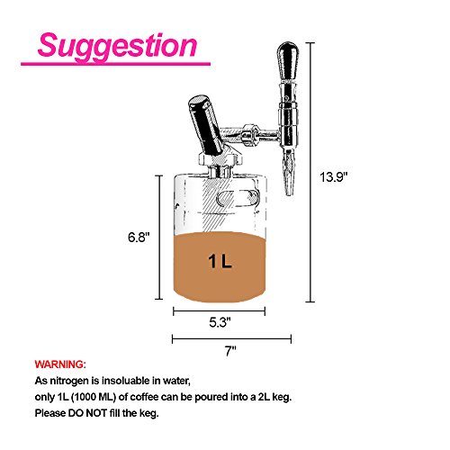 2L keg can be poured into 1.5L coffee because nitrogen is insoluble in water. Please do not fill the keg.